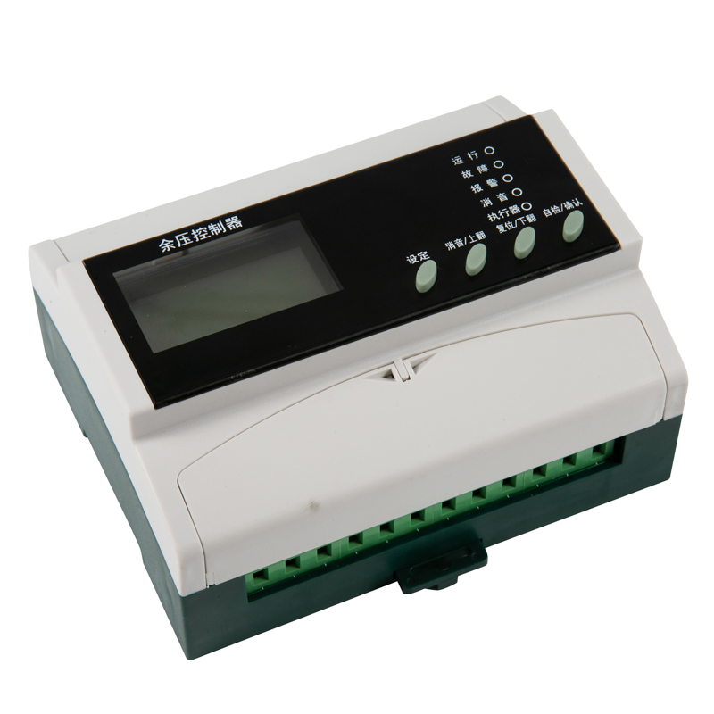 控制器由电源模块、输入/输出单元、控制单元、通讯模块和保护单元组成。火灾发生时,机械加压送风机启动,余压控制器根据接收到的压力差值传感器超压/加压指令,控制加压送风系统泄压阀的开关,从而控制加压送风机的送风量,实现上述各 部位和区域的机械加压送风系统的自动控制。