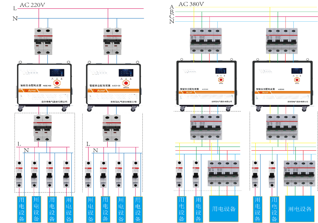 智能安全配电装置通常安装在所需用电场所配电箱的前面,串进进线回路中。